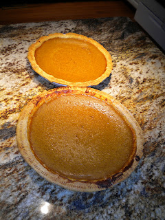 Thanksgiving day was wonderful. The night before we made pumpkin pies. I rolled out the crusts while my husband mixed up the filling.